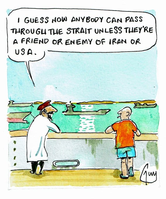 - Je suppose que n’importe qui peut traverser le détroit à moins d’être un ennemi ou un ami de l’Iran ou des Etats-Unis. Guy Venables.