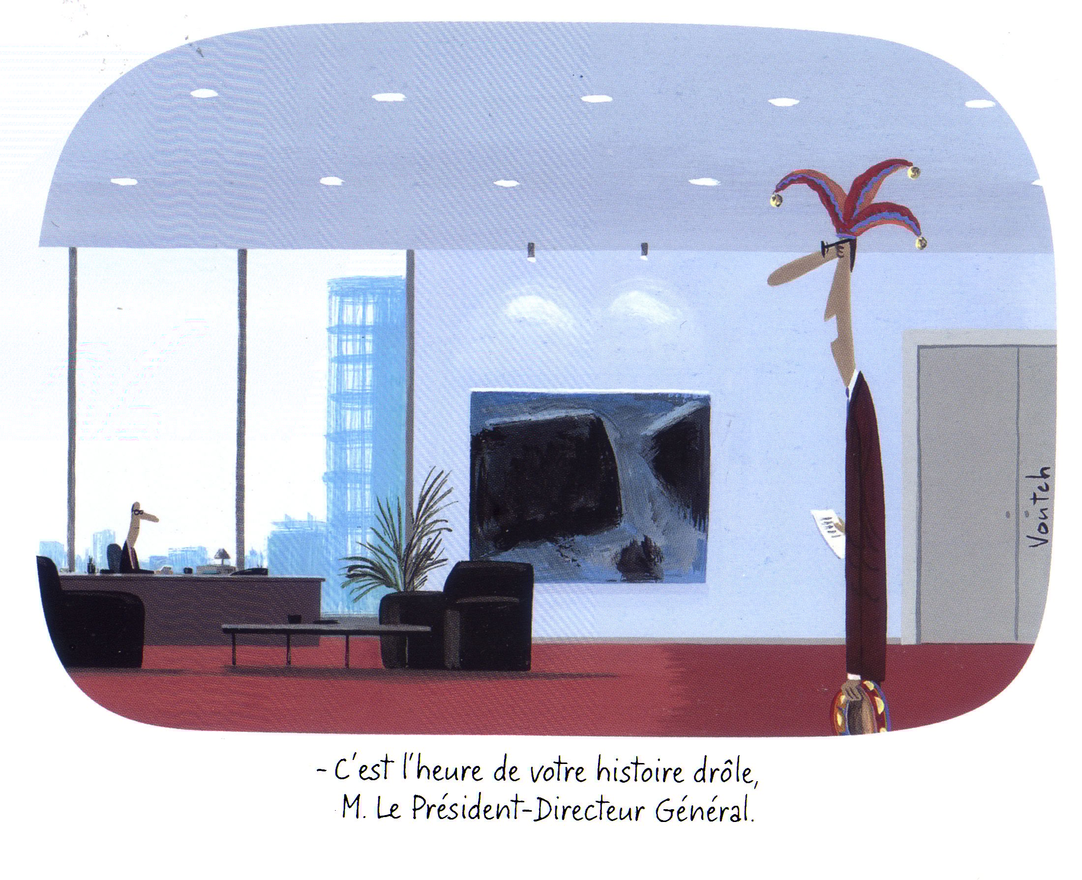 (Caricature ci-dessus extraite de “Le Monde merveilleux de l’entreprise”, un des meilleurs Voutch, très en avance sur l’essai du sociologue David Graeber, “Bullshit jobs” (2018), dédié à la bureaucratisation accélérée de l’économie capitaliste.)